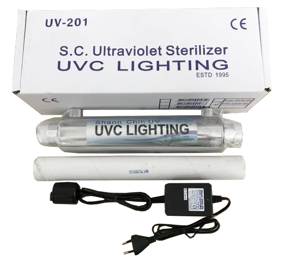 - Bộ đèn UV-201 công suất 14w, lưu lượng 450 lít/giờ