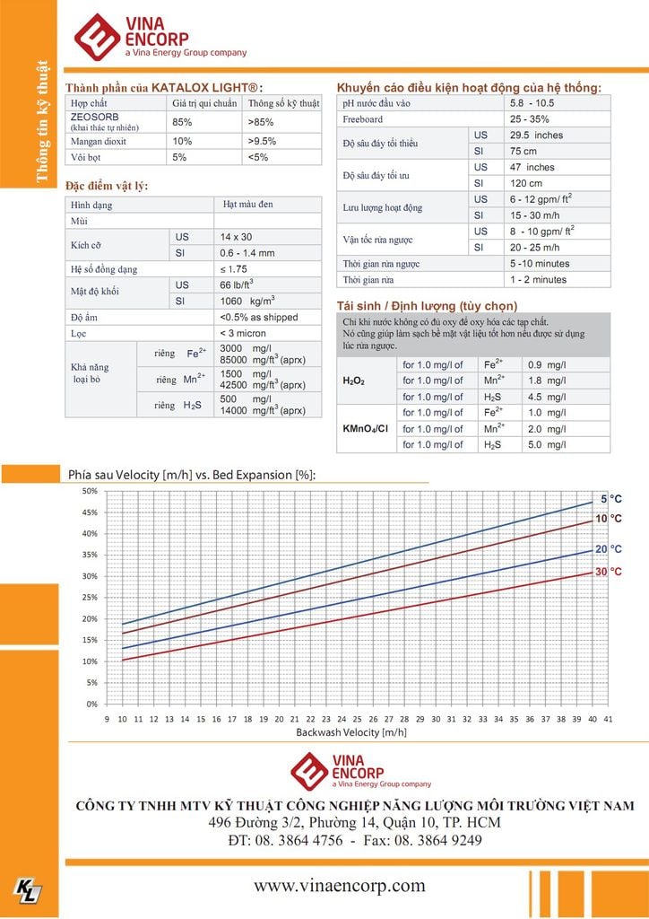 - Lớp phủ mangan đioxit hàm lượng cao trên bề mặt Katalox Light® (10%) là ưu điểm lớn nhất so với sản phẩm tương tự trên thị trường. Điêu này làm oxy hóa và đồng kết tủa các tạp chất hiệu quả hơn nhiêu. Đề loại bỏ tạp chất có hàm lượng quá cao, nên sử dụng H2O2 làm chất oxy hóa, thúc đây oxy hóa xúc tác nhanh hơn trên bê mặt vật liệu. Nêu cân thiết, các chất oxy hóa thông thường như chlorine hay thuốc tím cũng có thê được sử dụng.